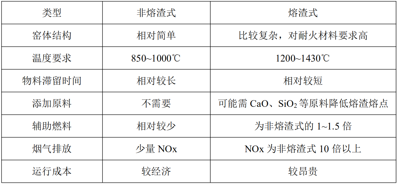 圖注:熔渣式與非熔渣式回轉(zhuǎn)窯對(duì)比