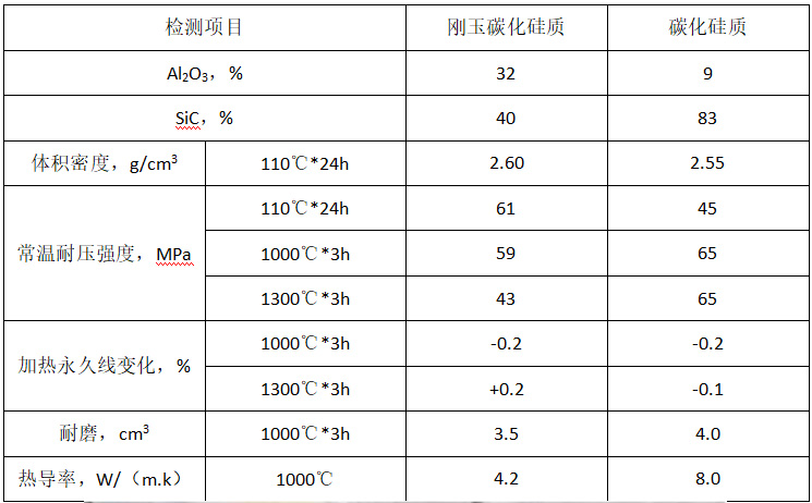表 1 剛玉-碳化硅、碳化硅質(zhì)材料指標(biāo)