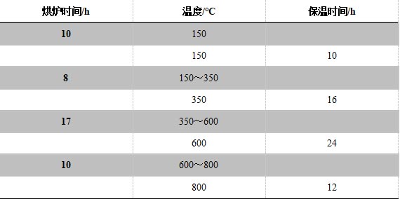 表2自焙炭磚爐襯溫升高.保溫時間參考表