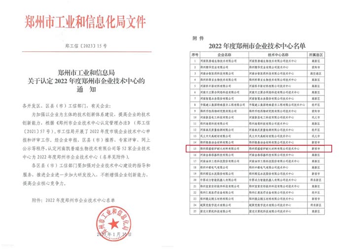 喜訊!榮盛耐材被認定為「鄭州市企業(yè)技術(shù)中心」