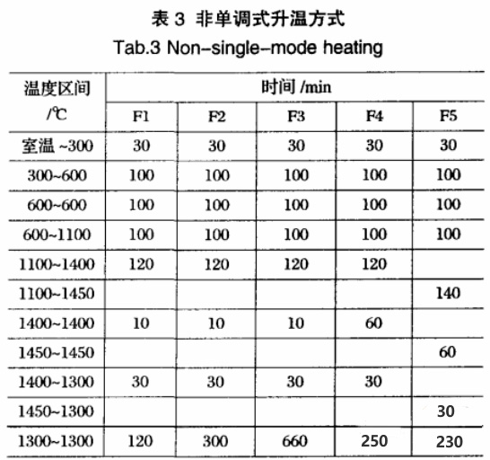 由以上分析可以看出,非單調(diào)式升溫方法有可能在耗時(shí)更短、耗能更小的情況下達(dá)到更高的莫來石轉(zhuǎn)化率。而采用非單調(diào)升溫方式處理后的合成料在顯微結(jié)構(gòu)上及其他性能特點(diǎn)上有何獨(dú)特之處值得后續(xù)工作進(jìn)行深入研究。