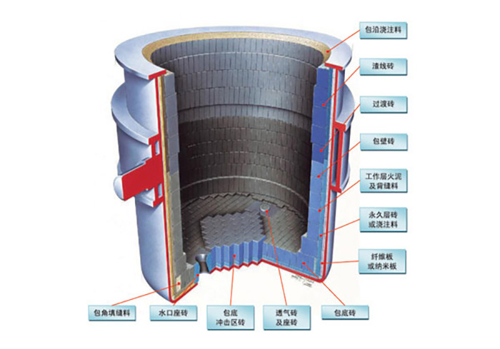 采用具有優(yōu)良抗熱震性、化學(xué)穩(wěn)定性和機(jī)械強(qiáng)度的耐火材料(如鎂碳磚、鋁鎂尖晶石磚等)。